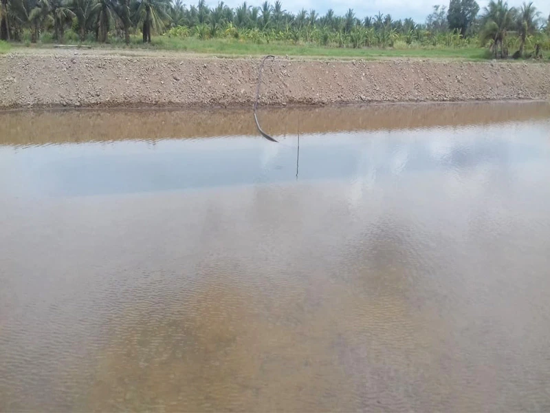 Nước mặn đã được bơm vào để xử lý đáy ao.