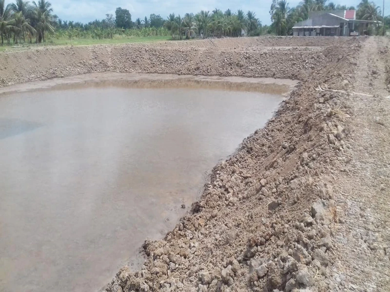 Đến thời điểm này bốn ao (mỗi ao có diện tích gần 1.000 m2, sâu hơn 2 m) đã được đào hoàn thành.Trong bốn ao trên, có hai ao đã bơm nước mặn vào để xử lý đáy ao.