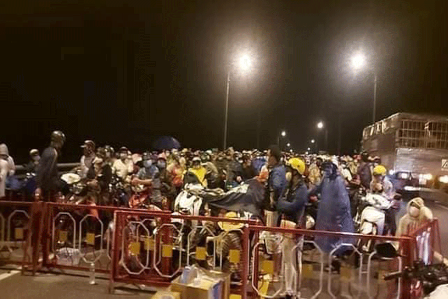 Hàng ngàn người dân về đến chốt cầu Cổ Chiên chờ được qua chốt về Trà Vinh. Ảnh: CTV