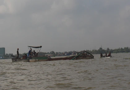 '"Cát tặc" trộm cát trên sông Cổ Chiên giữa ban ngày, thách thức dư luận.