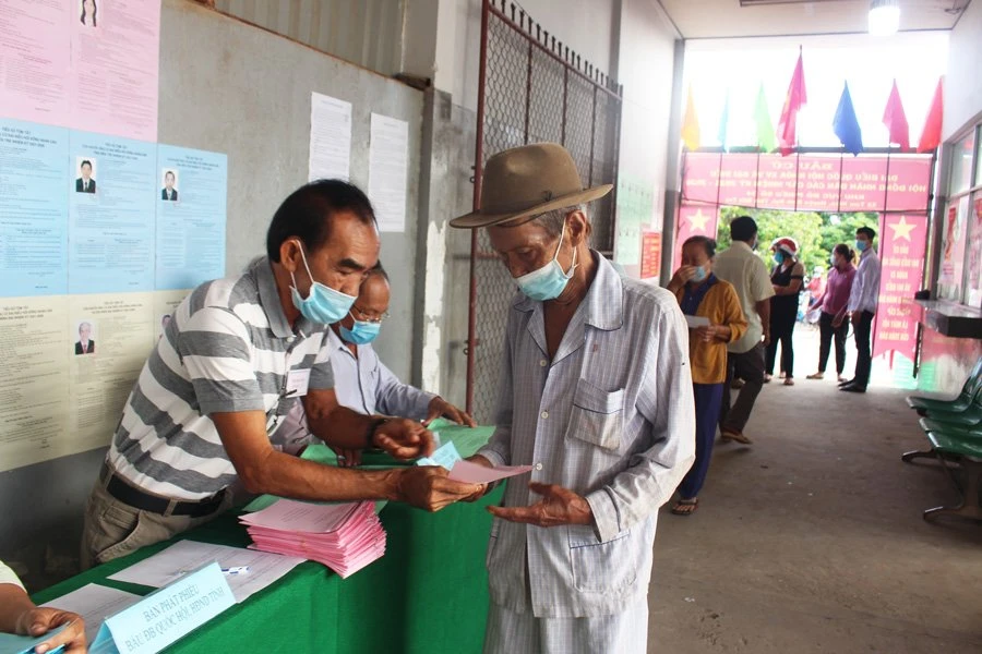 Cử tri nhận phiếu bầu để thực hiện quyền công dân của mình. Ảnh: Đông Hà