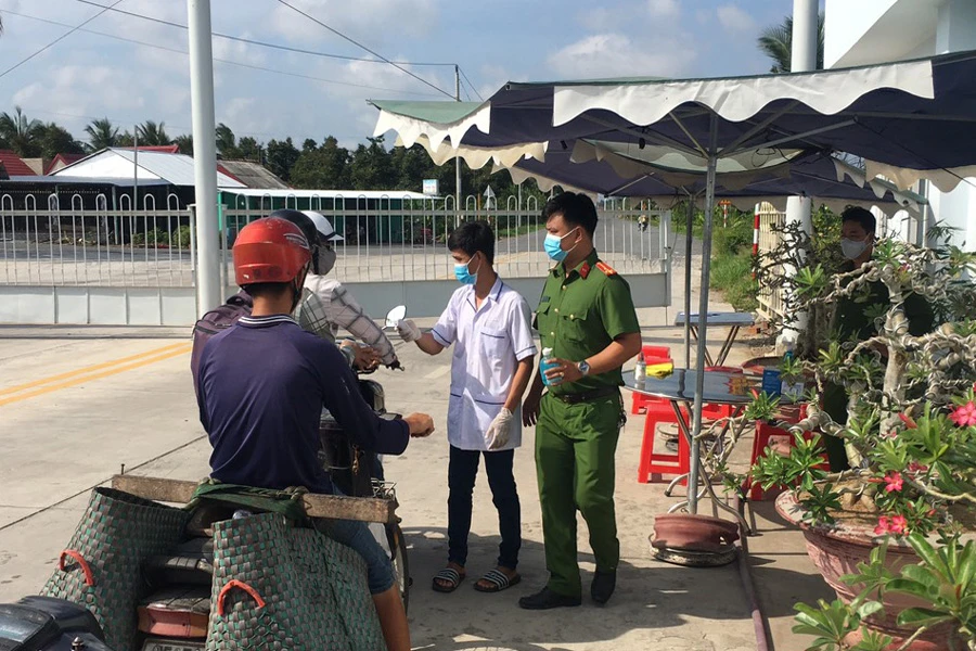 Người về từ vùng dịch buộc phải khai báo y tế khi vào tỉnh Bến Tre. Ảnh: ĐH