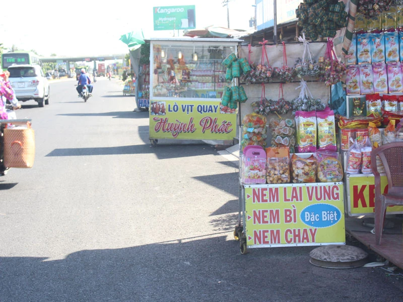 Hàng hóa, thực phẩm tràn xuống lòng đường QL60.