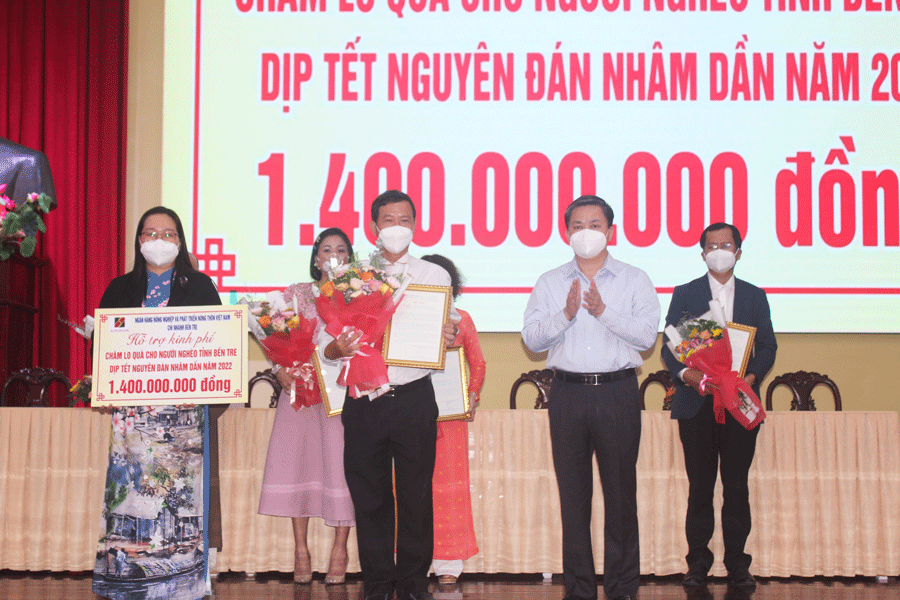 Để góp phần chăm lo tết cho người nghèo, gia đình chính sách khó khăn, tại buổi lễ đại diện các đơn vị, tổ chức, doanh nghiệp, tổ chức tôn giáo, cá nhân trong và ngoài tỉnh đã trao hỗ trợ ủng hộ tỉnh Bến Tre thực hiện thực hiện an sinh xã hội, chăm lo Tết cho hộ nghèo, cận nghèo, gia đình chính sách khó khăn và trao bảng tượng trưng hỗ trợ vốn cho phụ nữ nghèo phát triển sinh kế và phòng tránh thiên tai.