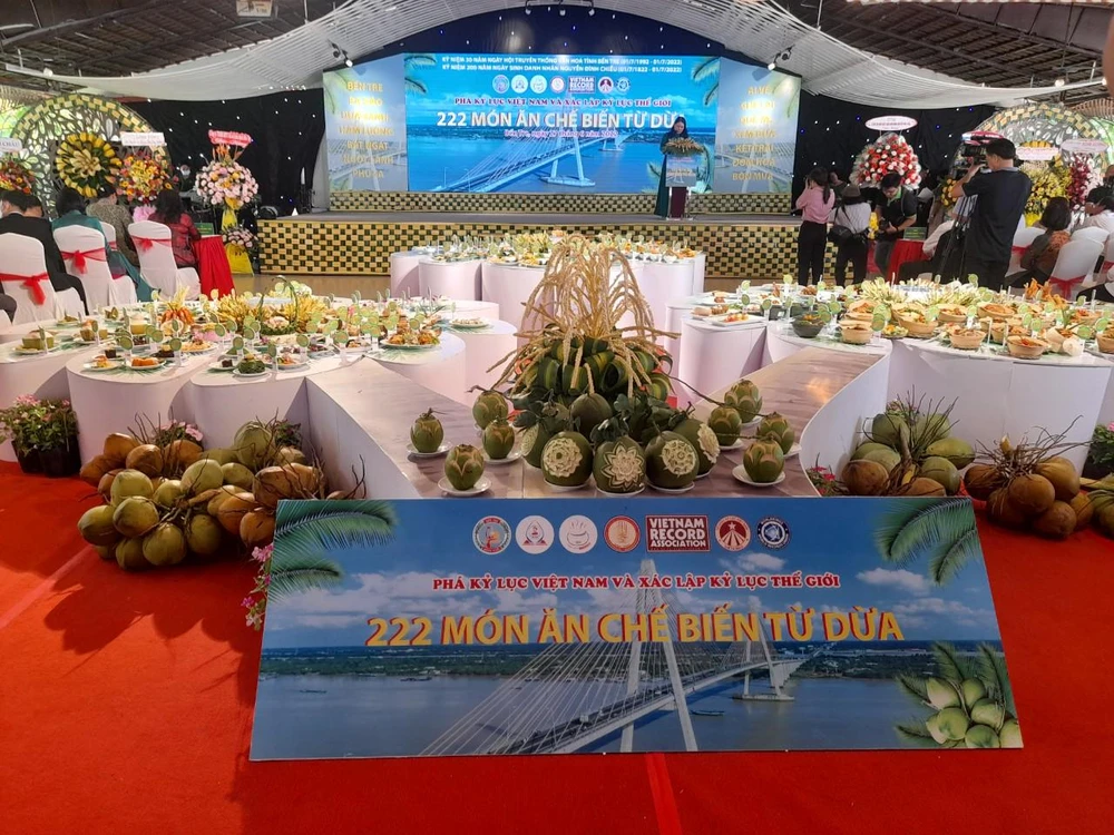 Với 222 món ăn từ dừa, Bến Tre đã được xác lập kỷ lục Việt Nam và xác lập kỷ lục thế giới với nội dung: “Tỉnh Bến Tre – Nơi tổ chức sự kiện chế biến và công diễn các món ăn từ dừa nhiều nhất Việt Nam” và “Tỉnh Bến Tre – Nơi tổ chức sự kiện chế biến và công diễn các món ăn từ dừa nhiều nhất thế giới”.