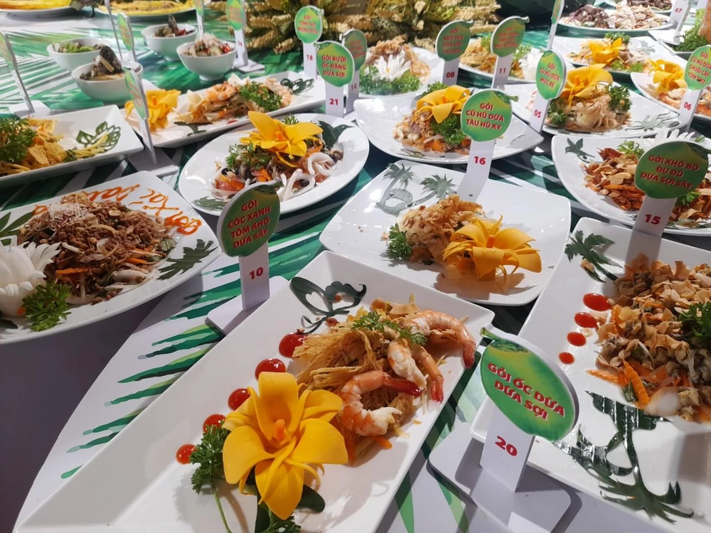 Từ nhiều nguyên liệu đa dạng, có thành phần dừa như: củ hủ dừa, dừa sợi, dừa sấy, nước cốt dừa, nước dừa tươi, mộng dừa… được các đầu bếp đã chế biến thành 222 món ăn.