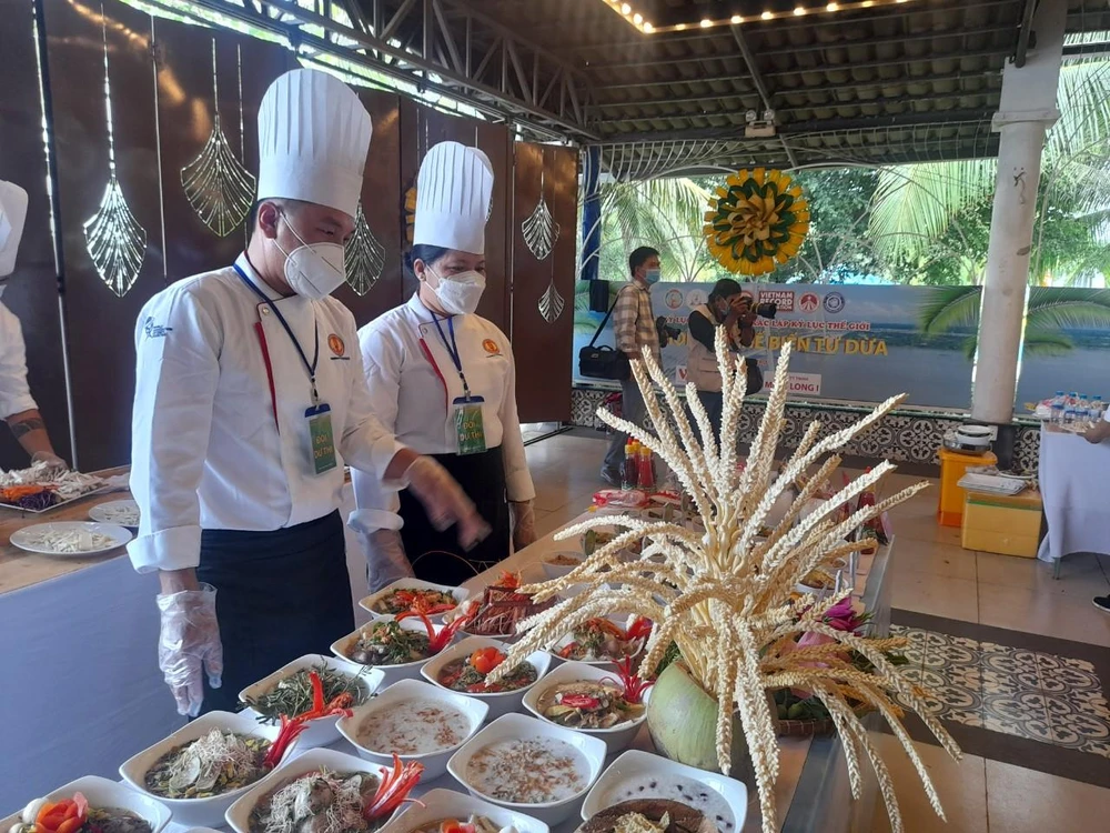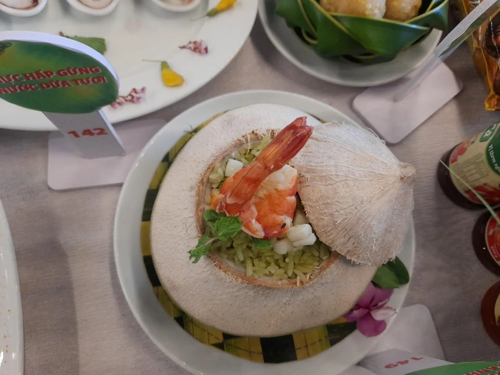 Tại sự kiện này, 222 món ăn từ dừa được nấu nướng công phu, chăm chút từ khâu chọn nguyên liệu đến trang trí tỉ mỉ từng chi tiết, tạo nên những món ngon mang đậm hương vị dừa Bến Tre bởi đội ngũ 55 đầu bếp chia làm 11 đội cùng tham gia chế biến, công diễn.