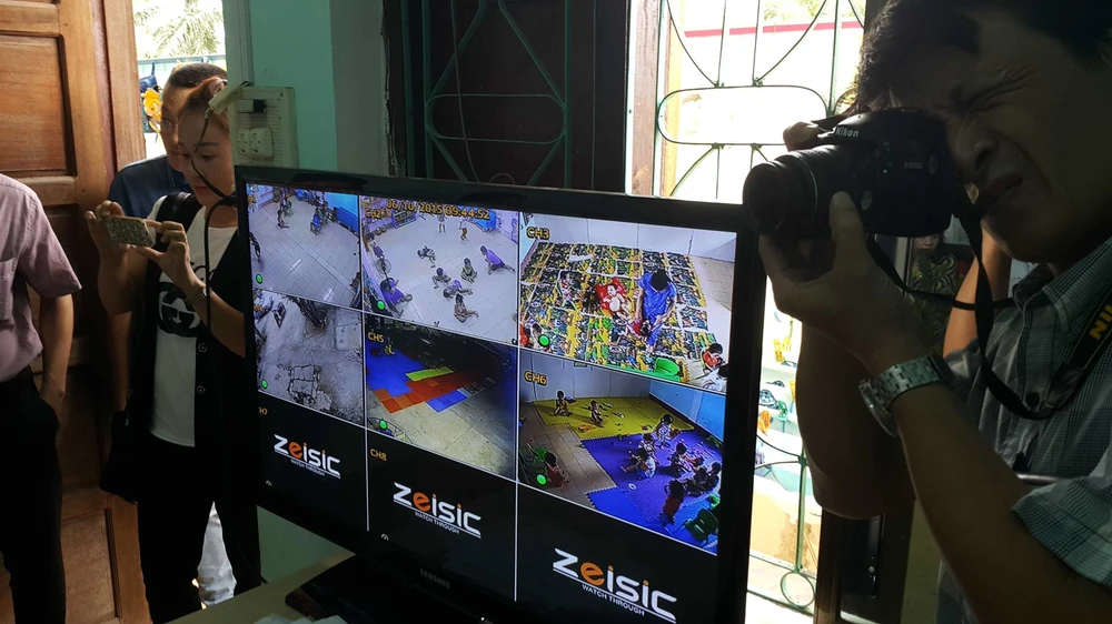 Mặc dù bà Hằng, chủ cơ sở Sơn Ca, nói có camera theo dõi nhưng vẫn để cho cô nuôi dạy trẻ hành hung trẻ dã man vào ngày 5-10.