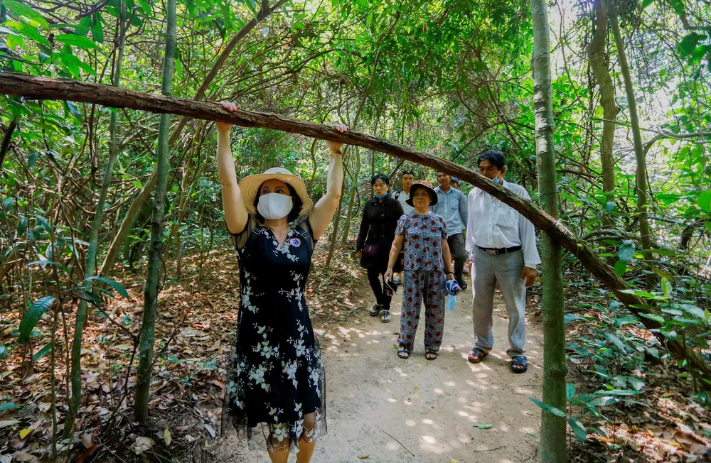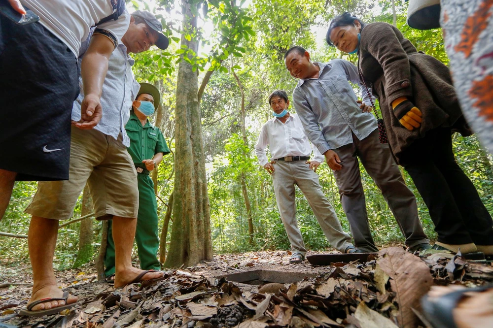 Du khách tham quan địa đạo Củ Chi vào sáng 9-9. Hằng năm, địa đạo củ Chi đón hàng ngàn lượt khách cả trong và ngoài nước đến tham quan, tìm hiểu, nghiên cứu lịch sử.