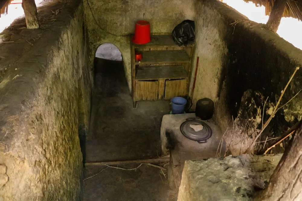 Bếp Hoàng Cầm với hệ thống thông khói theo từng ụ, có công dụng làm tan loãng khói bếp tỏa ra khi nấu ăn nhằm tránh bị máy bay phát hiện từ trên cao, cũng như ở gần.