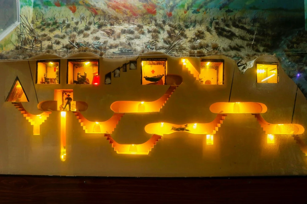 Mô hình hệ thống hầm ở địa đạo Củ Chi. Hệ thống hầm là công trình khoa học quân sự gồm hệ thống hầm nhân tạo dài hơn 200 km, nằm sâu trong lòng đất, có nhiều tầng, nhiều ngõ ngách. Đây là nơi để quân đội trú ẩn, sinh sống, họp hội và chứa vũ khí chiến tranh.