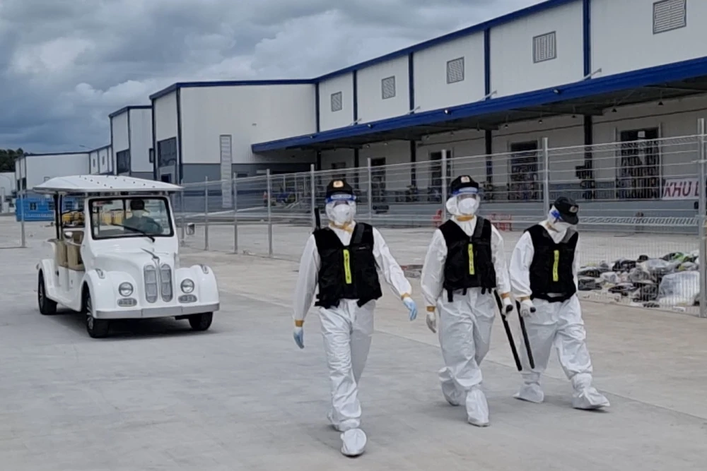 Do số lượng F0 lớn và trước đó đã xảy ra tình trạng lộn xộn mất ANTT nên hàng chục Cảnh sát cơ động đã được điều động, đóng chốt ở đây để đảm bảo tình hình ANTT.