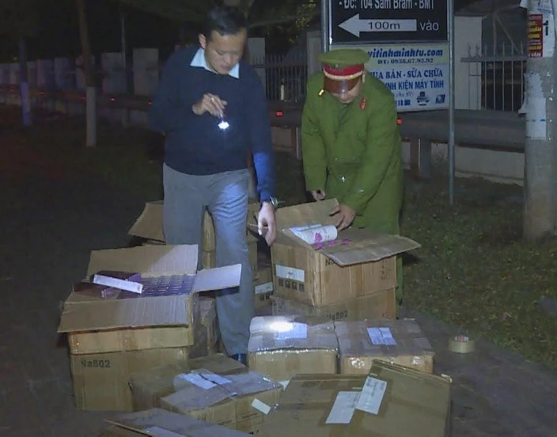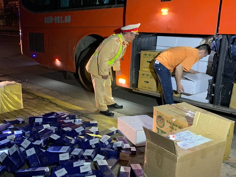 Cụ thể, qua kiểm tra, Đội Cảnh sát kinh tế đã kết hợp cùng cảnh sát giao thông phát hiện xe ô tô khách BKS 81B-011.85 chở 270 bao thuốc lá ngoại nhập, xe ô tô khách BKS 81B-003.26 đang vận chuyển 15 thùng mỹ phẩm các loại không rõ nguồn gốc.
