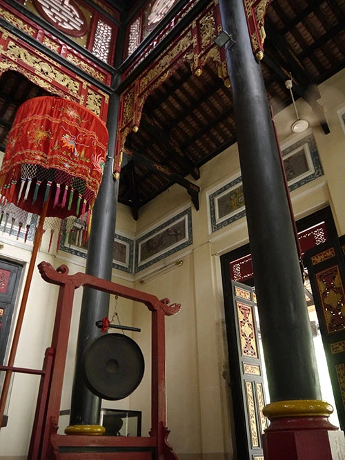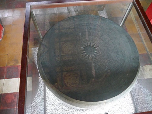 Chiếc trống đồng cổ được đặt bên trong chánh điện