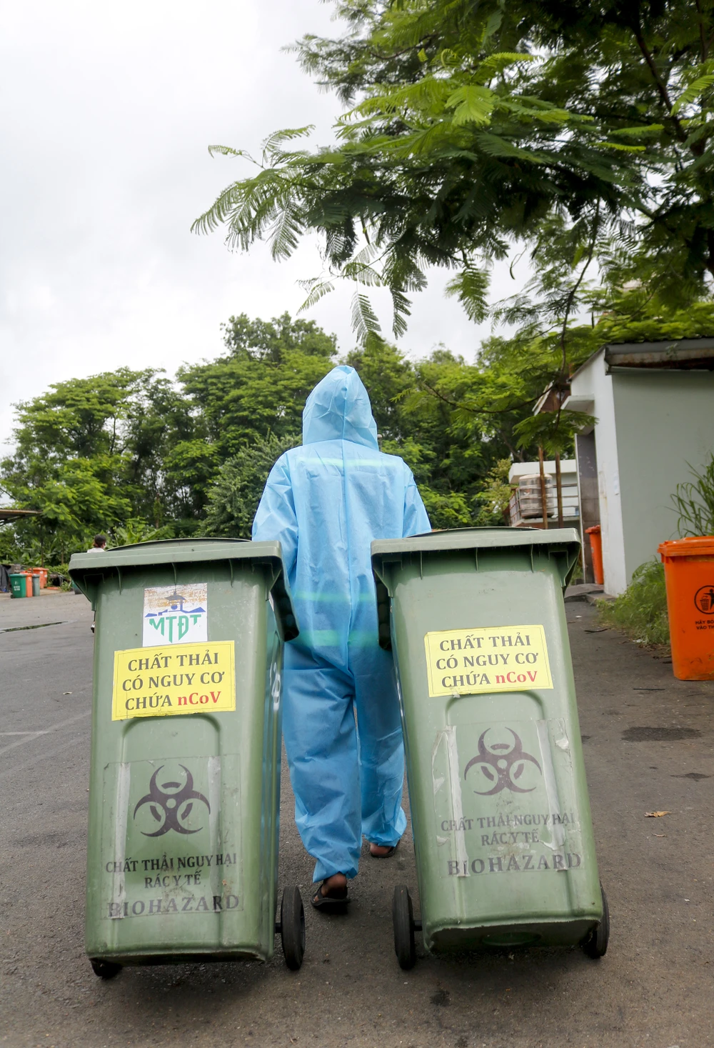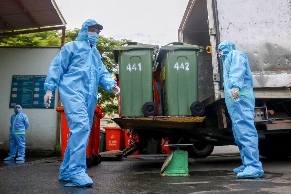 Đội công nhân thu gom, xử lý rác liên quan dịch ở Công ty môi trường đô thị có khoảng 80 người. Hàng ngày, họ phải thu gom rác từ hơn 85 khu cách ly tập trung, một số bệnh viện ở thành phố.