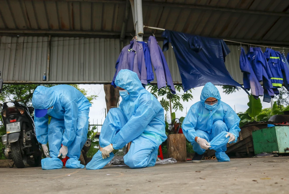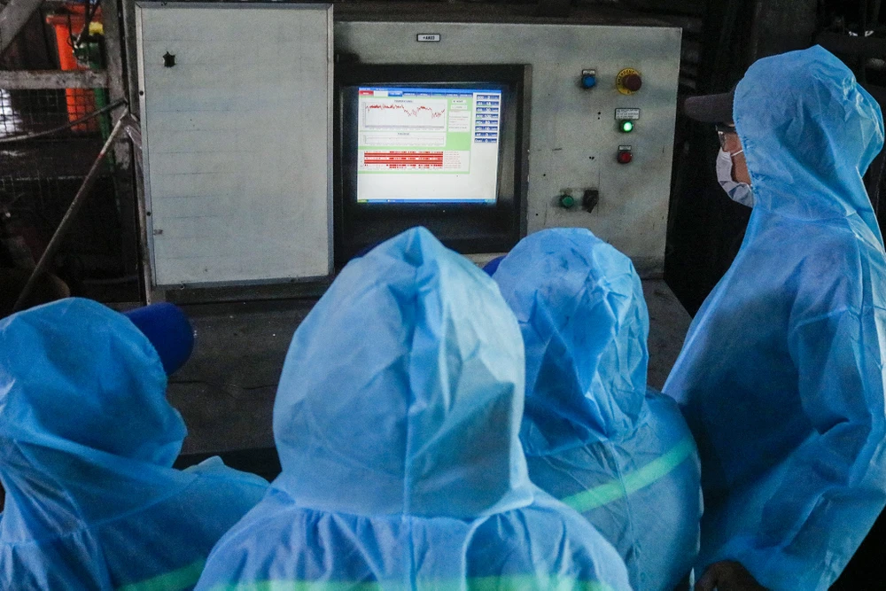 Khoảng 7h30 mỗi ngày, những công nhân đang làm việc tại nhà máy xử lý chất thải nguy hại Đông Thạnh, (huyện Hóc Môn, TP.HCM) thuộc Công ty TNHH MTV Môi trường đô thị TP.HCM lại tất bật chuẩn bị đồ bảo hộ để bắt đầu một ngày làm việc xử lý rác thải nguy hại liên quan COVID-19.