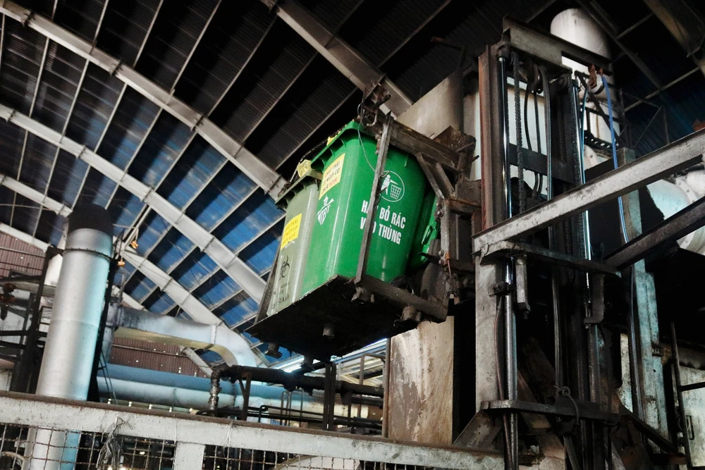 Những thùng rác rỗng sau đó sẽ được đem đến khu riêng để thực hiện việc chà rửa, vệ sinh.