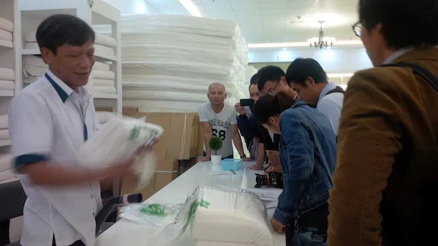 Sau khi khách mua hàng thì được nhân viên cho vào túi nylon và hút chân không nên các sản phẩm được bóp lại rất nhỏ bỏ gọn vào túi xách, valy loại nhỏ nên rất tiện lợi. Bên trong showroom này có đề nghị cấm chụp ảnh, quay phim.