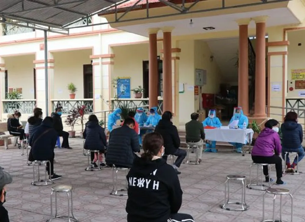 Người dân liên quan đến các ca bệnh COVID-19 có mặt tại Trạm Y tế xã Lâm Thao để điều tra dịch tễ và lấy mẫu xét nghiệm. Ảnh: http://bacninh.gov.vn/