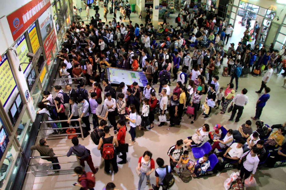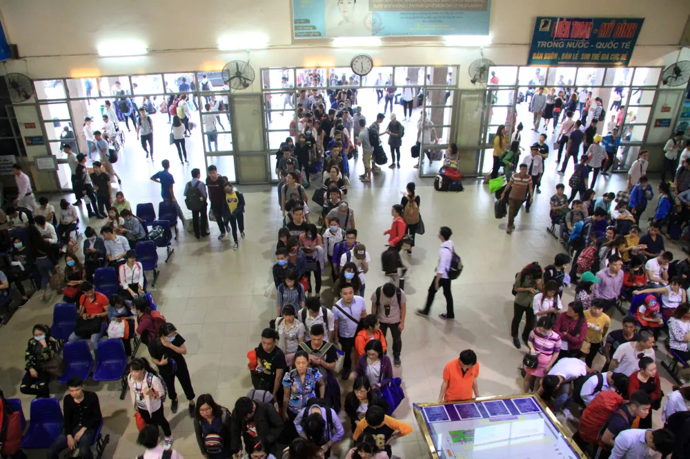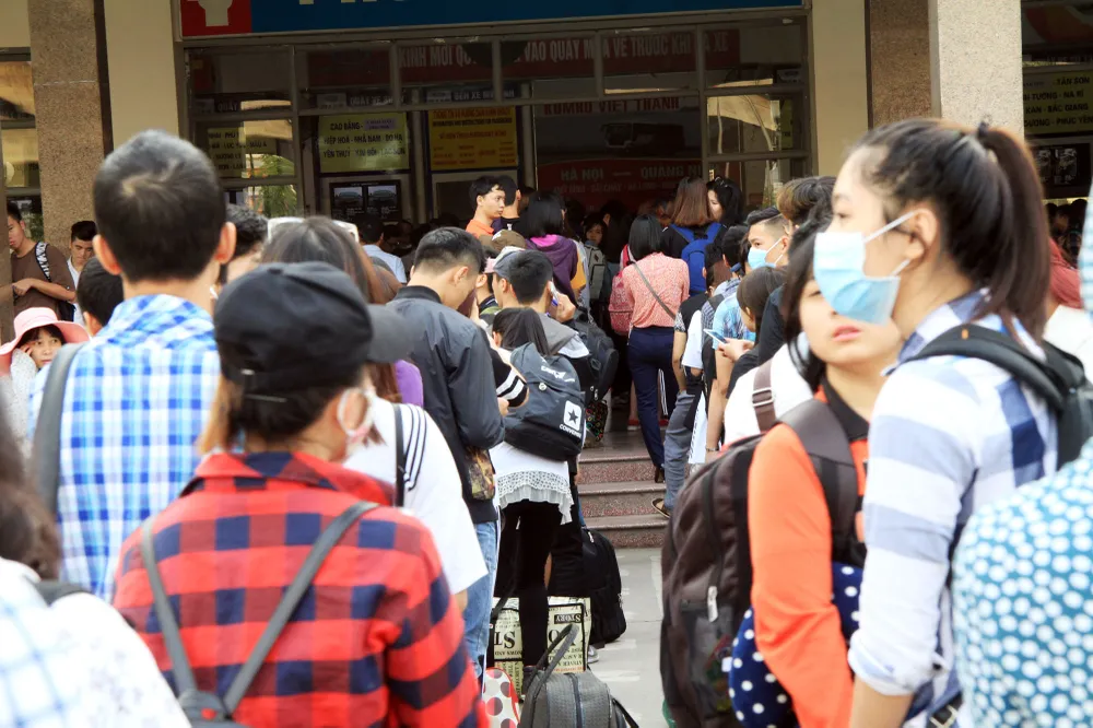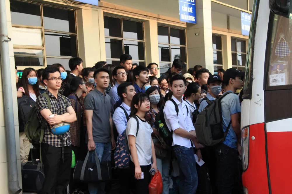 Ước tính sẽ có khoảng 40.000 lượt khách sẽ tới Bến xe Mỹ Đình để đi các tỉnh trong hai ngày 28 và 29-4. (Ảnh: PHI HÙNG)