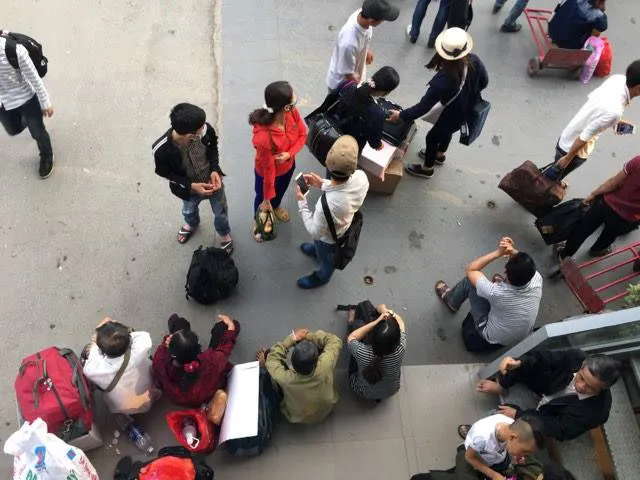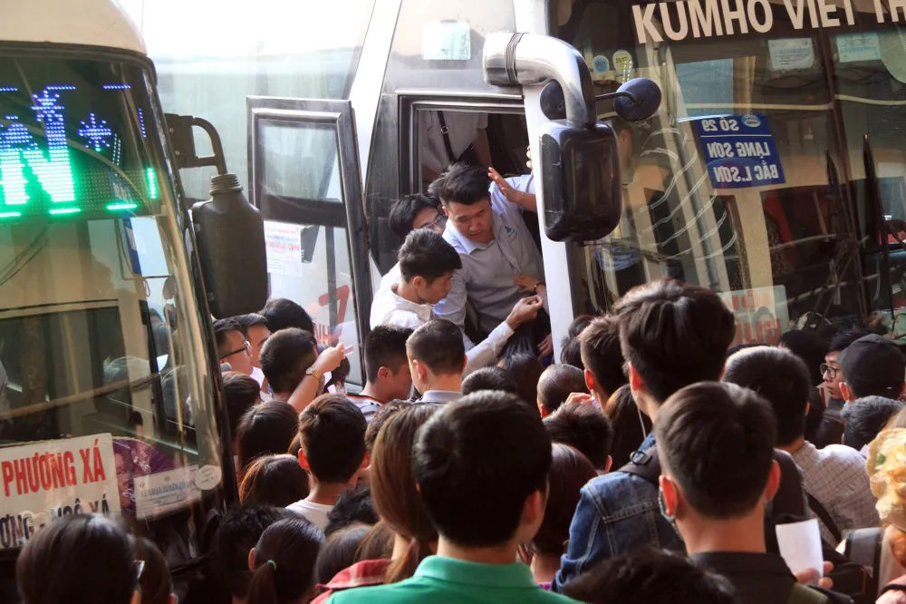 Khi ra bến xe anh được các hãng xe thông báo hết vé nên phải chấp nhận ra ngoài bến để bắt xe: "Trước tình cảnh không có vé thì tôi buộc chấp nhận nhồi nhét để được về quê" - anh Hồ nói (Ảnh: VIẾT THỊNH).