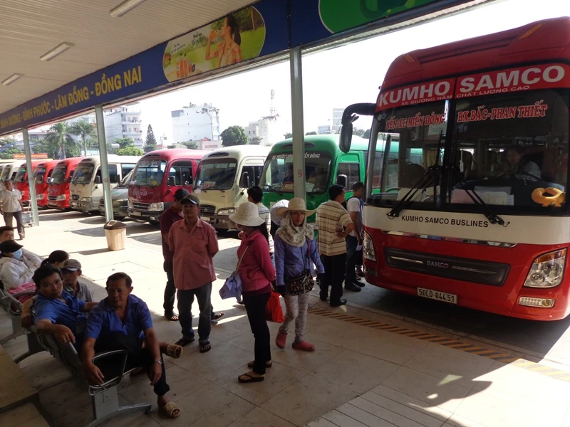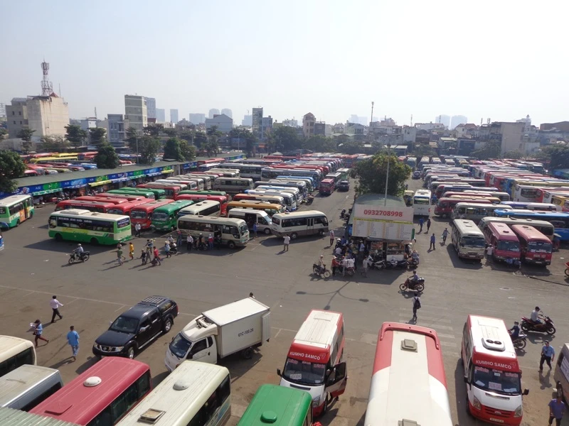 Đến sáng nay Bến xe Miền Đông đã tổ chức lại mặt bằng bến với khu vực xe đậu chờ ở phía xa, hàng xe vào sát nhà ga để đón khách ở phía trước.