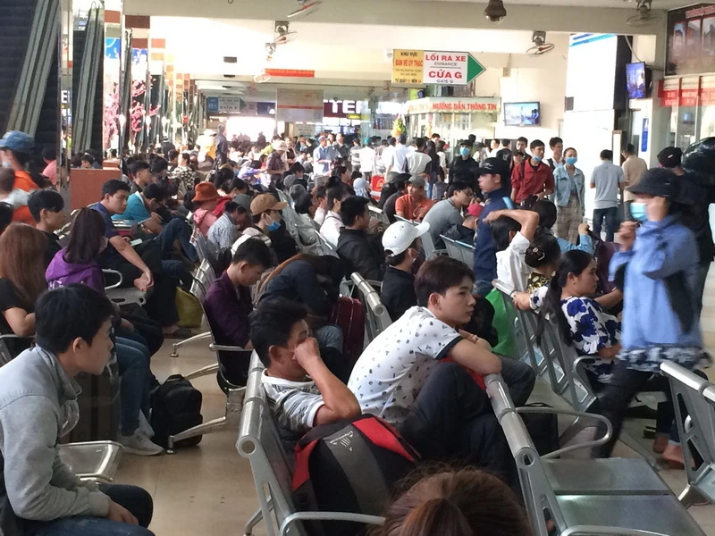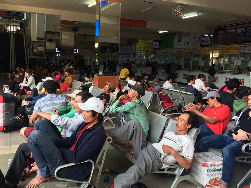 Ghi nhận lúc 15 giờ ngày 5-2, tại nhà ga Bến xe Miền Đông, nhiều người dân bắt đầu rời TP.HCM về quê ăn tết. Lượng người ra về vào thời điểm này đa số là sinh viên, lao động tự do. Tại khu vực bên ngoài, bên trong nhà ga các ghế ngồi chờ dường như không còn một chỗ trống. Lượng người đổ về càng lúc càng đông.