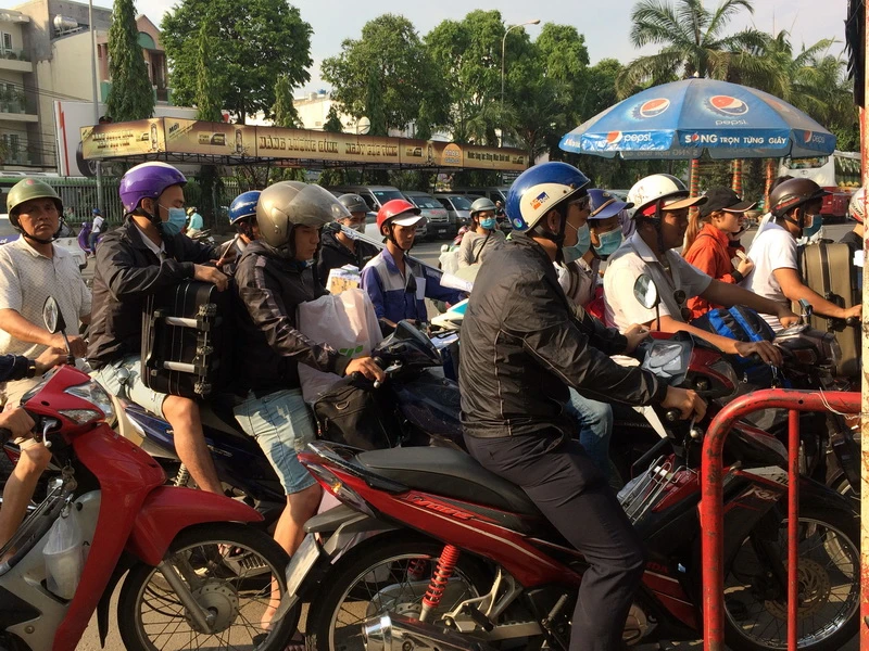 Tại cửa soát vé, bảo vệ kiểm không kịp, nhiều người chen lên do ai cũng muốn đi trước cho khỏi trễ xe.