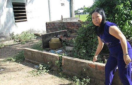 Bà Thoa cho rằng ranh đường dẫn bến xe quá gần với nhà ở là không an toàn. Ảnh: N.NAM