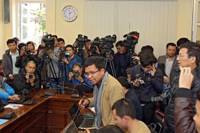 Phóng viên tác nghiệp tại buổi gặp gỡ báo chí chiều 7-1. Ảnh: Việt Dũng/TTO
