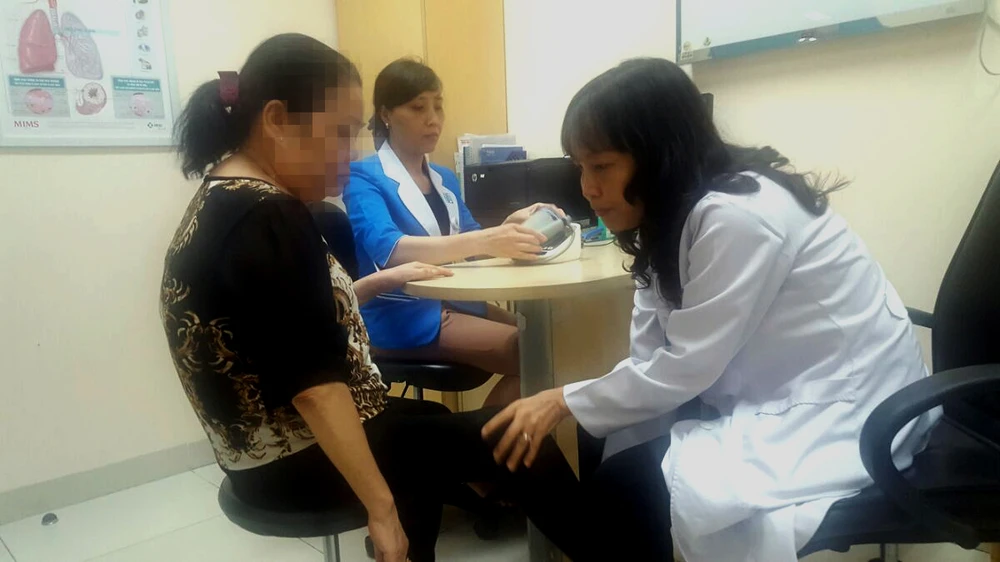 BS Cao Thanh Ngọc đang khám bệnh liên quan đến xương khớp cho một bệnh nhân.
