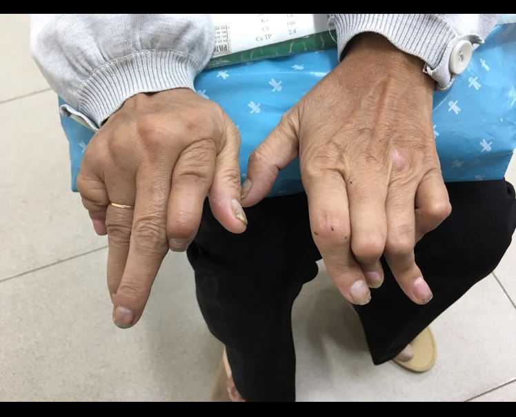 Bệnh nhân bị viêm khớp dạng thấp nặng, biến dạng khớp ở giai đoạn muộn.