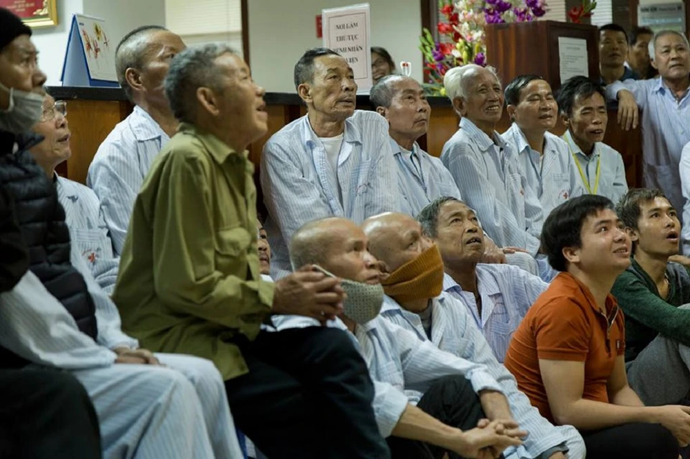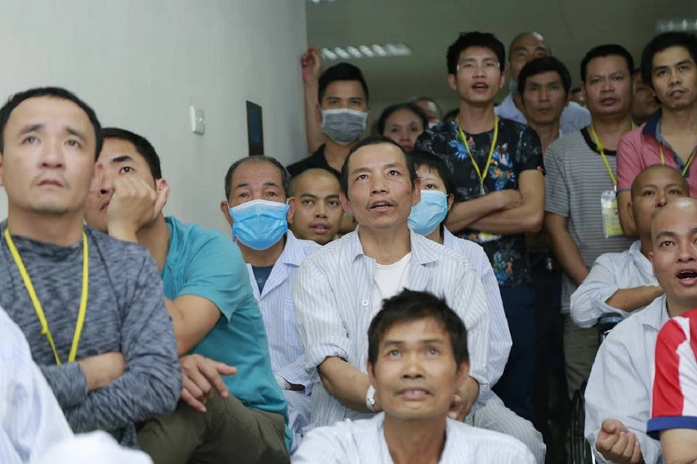 "Đau đớn gì cũng quên cả rồi, xem Việt Nam đá hay thế này thì bệnh chóng mà khỏi" - bác Huỳnh Thế Thành, BV Huyết học và Truyền máu TW, chia sẻ.
