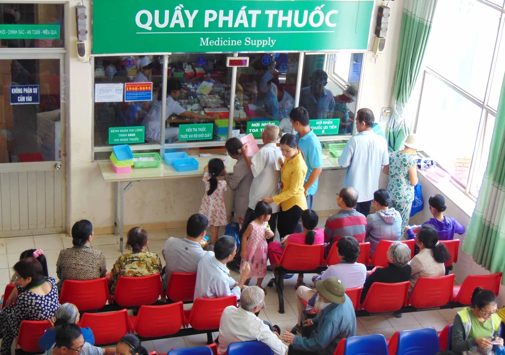 Bệnh nhân BV quận 12 (TP.HCM) đang nhận thuốc. Ảnh: TRẦN NGỌC