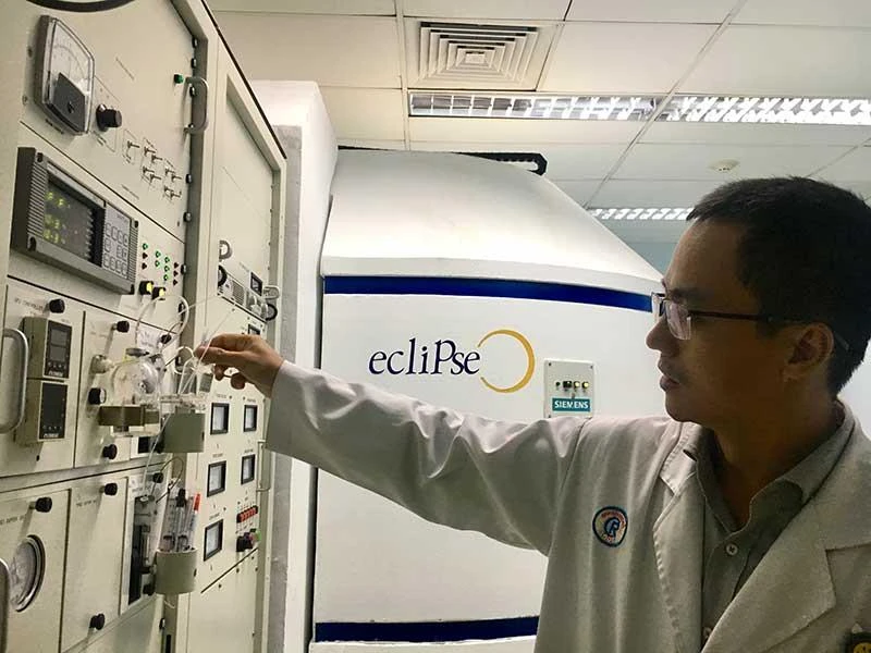 BS Cảnh cho hay để có thể chụp được PET-CT, người bệnh trước tiên sẽ được tiêm thuốc phóng xạ để ghi hình chi tiết nơi tổn thương. Thuốc này do lò thuốc phóng xạ đặt tại BV sản xuất.