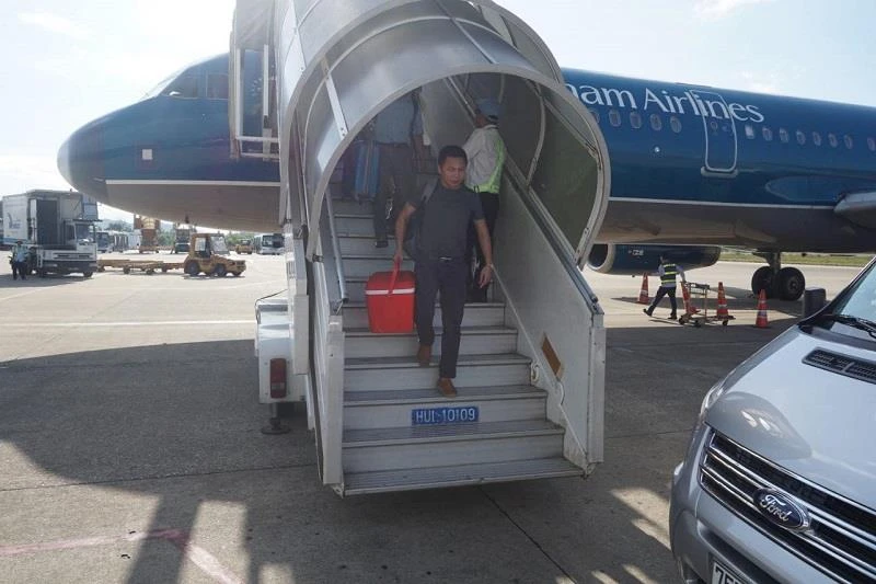 Quả tim từ bệnh nhân chết não tại Hà Nội được vận chuyển vào Huế bằng đường hàng không. Ảnh: NT