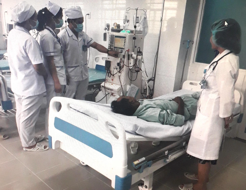 Bệnh nhân đang chạy thận nhân tạo tại BV quận 7. Ảnh: BV CUNG CẤP