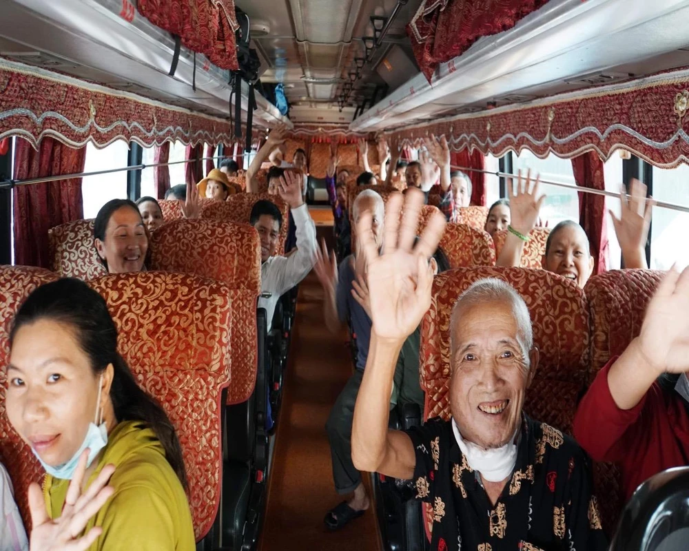 Bệnh nhân vui vẻ về quê trên "Chuyến xe yêu thương". Ảnh: ĐH