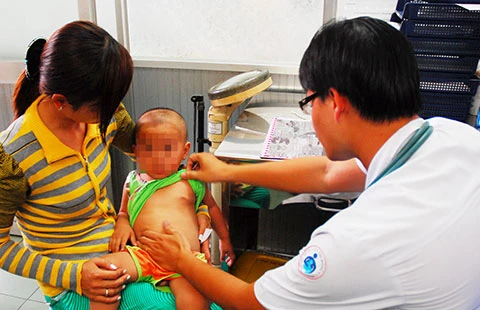 Khám cho một bệnh nhi tại BV Nhi đồng 1 do bị sốt. Ảnh: HTD