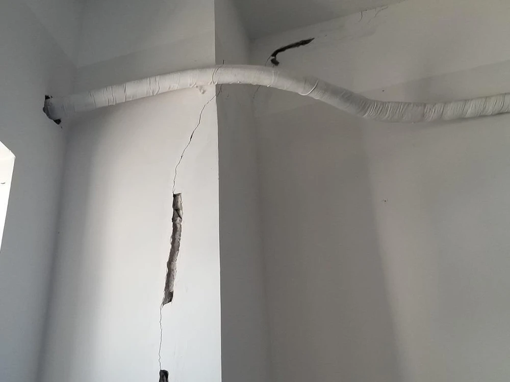 Các vết nứt xé tường tại BV huyện Cái Nước. Ảnh: TRẦN VŨ