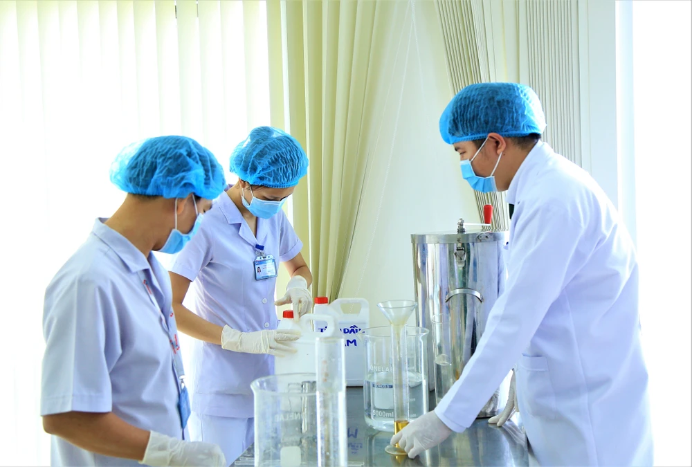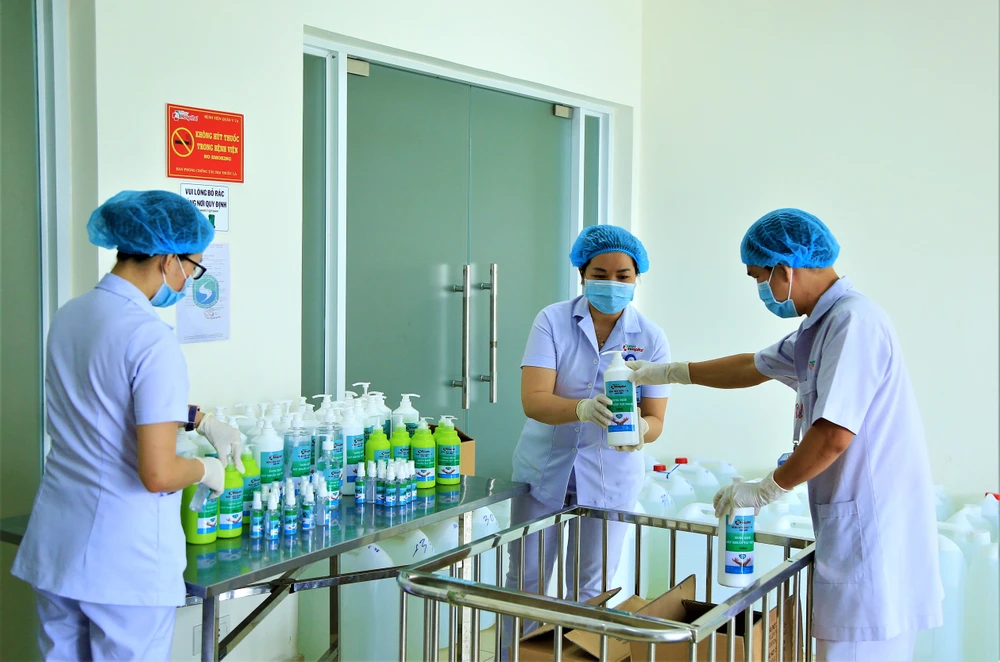 Ban đã sản xuất được 100 chai loại 1.200 ml, 100 chai loại 500 ml, 500 chai nhỏ loại 50 ml và 100 lít thành phẩm phục vụ cho nhân viên và người dân khi đến khám và điều trị tại bệnh viện.