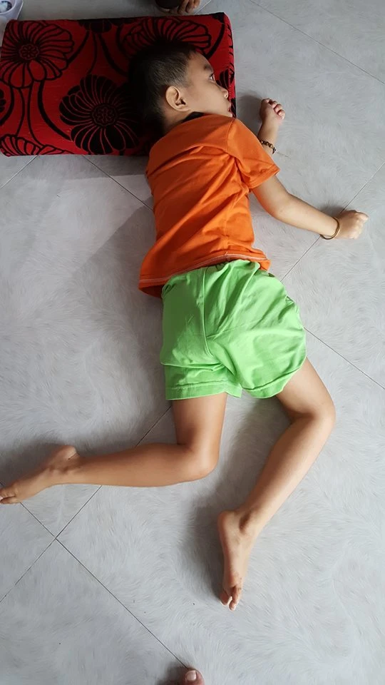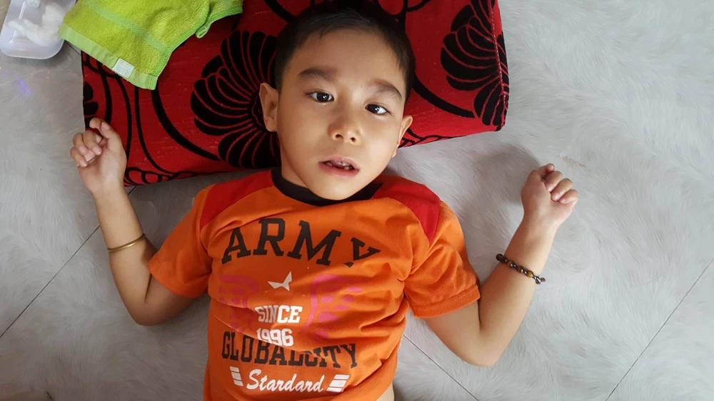 Bé Khang hiện vẫn bị liệt, không nói được do di chứng sau mổ.