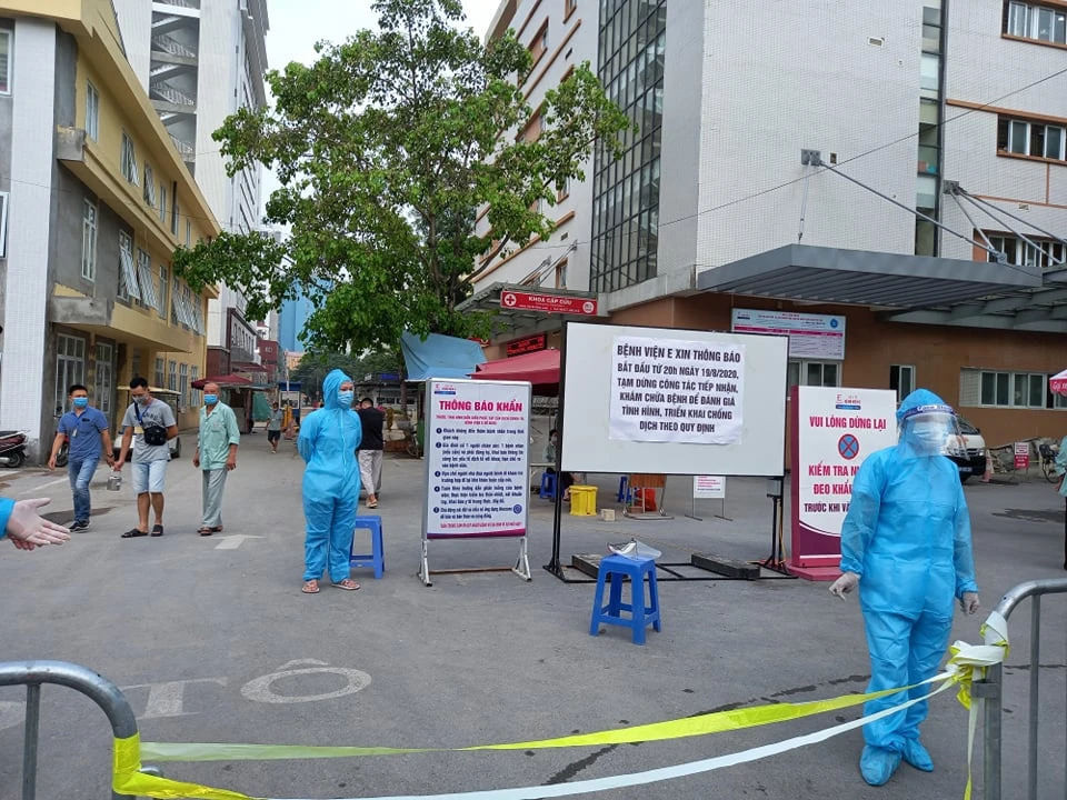 Bệnh viện E Hà Nội bị phong toả sáng 20-8 do có 1 ca mắc COVID-19 điều trị tại đây. Ảnh: HÀ PHƯỢNG