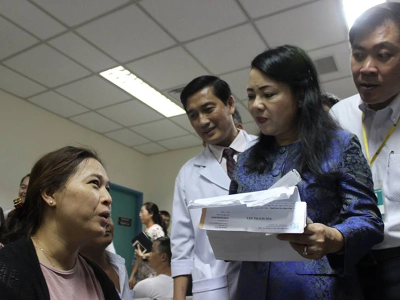 Ngày 13-8, Bộ trưởng Bộ Y tế Nguyễn Thị Kim Tiến đã đến thăm và kiểm tra tình hình khám chữa bệnh (KCB) tại hai BV Chợ Rẫy và BV ĐH Y Dược TP.HCM.