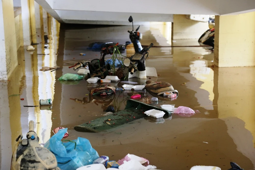 Nhiều vật dụng ở tầng trệt bị ngâm trong nước, hư hỏng. Ảnh: HẢI HIẾU