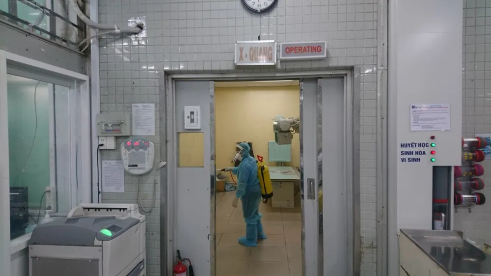 Các nhân viên y tế thường xuyên phun khử khuẩn trong các khu vực của bệnh viện.
