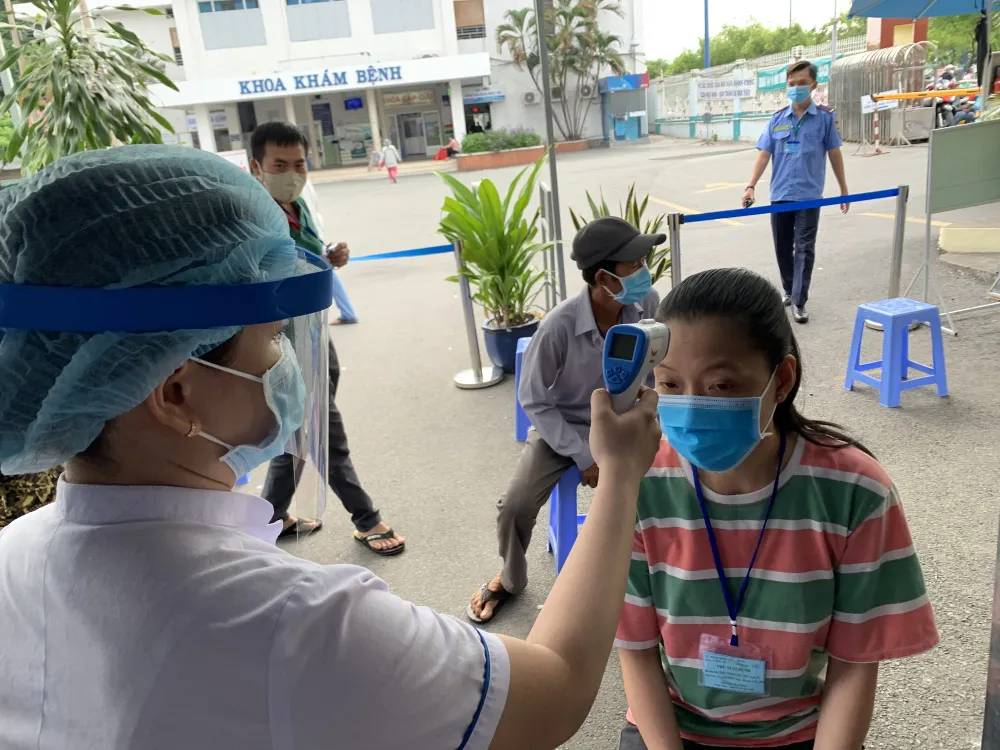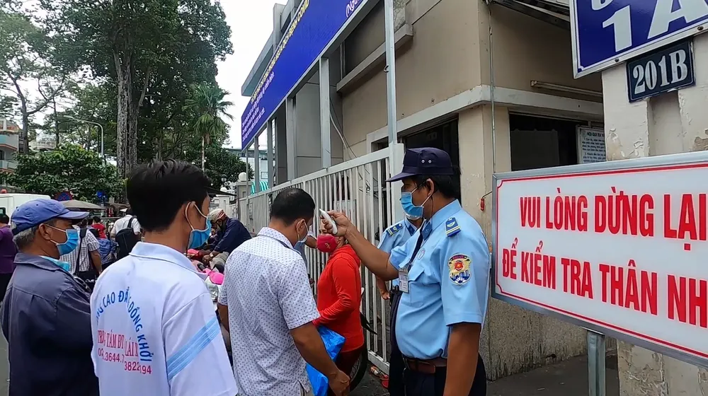 Bệnh viện Chợ Rẫy cử bảo vệ đo thân nhiệt ở các lối ra vào bệnh viện.