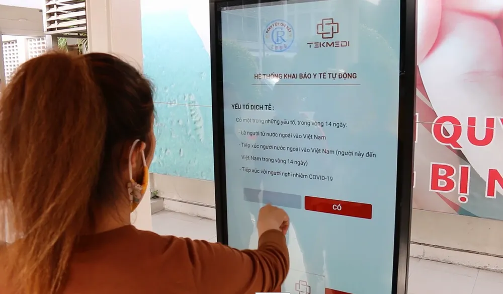Người bệnh khai báo y tế trước khi vào bệnh viện thăm khám.