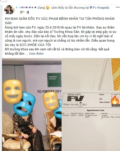 Mới đây, một nữ bệnh nhân có tài khoản Facebook Chau Nguyen chia sẻ thông tin trên trang cá nhân rằng bác sĩ ở BV Pháp Việt (FV, quận 7, TP.HCM) chẩn đoán bệnh nhân không có thai và cấp thuốc để đẩy dịch ứ trong lòng tử cung của mình. Tuy nhiên, khi chị nhập viện trở lại vì ra máu quá nhiều sau khi uống thuốc, bệnh viện lại kết luận chị bị hư thai khiến chị rất bức xúc.