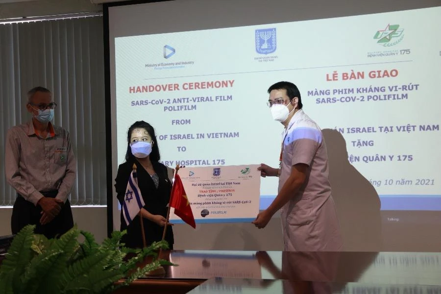 Chiều 19-10, Bệnh viện Quân Y 175 (TP.HCM) đã tổ chức tiếp nhận quà viện trợ công tác phòng chống dịch COVID-19 của Đại sứ quán Isarel và Công ty Polifim là màng phim chống virus do công ty Polifilm sản xuất.